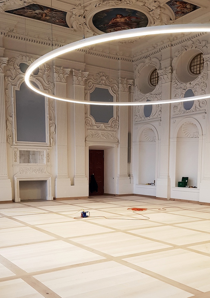 Rekonstruktion von Tafeldielung im Festsaal und barocker Treppenanlage im Mittelbau Schloss Hundisburg, 1693 / 1994